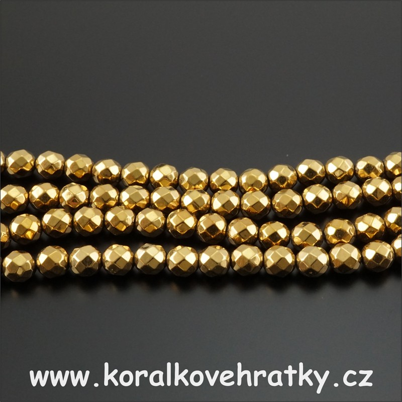 - HEMATIT, fasetovaný, zlatý pokov 6-7 mm, minerální korálky / balení 40 ks