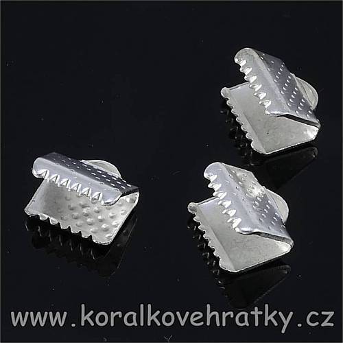 Koncovka na kůži, stužky, 12x5mm, barva stříbrná (balení 52ks)