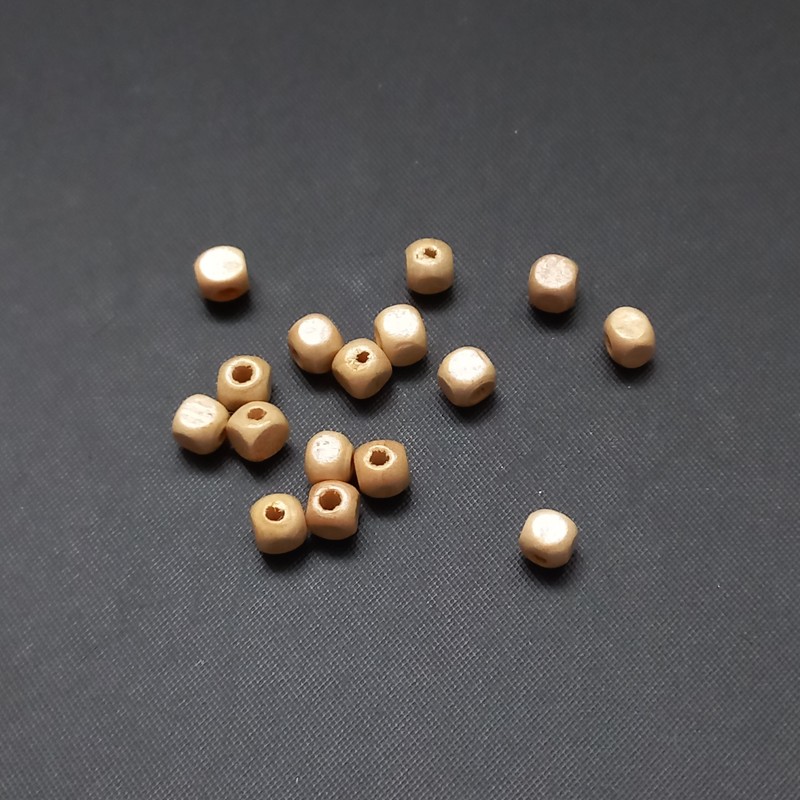 Korálek dřevěný kostka oblý roh 4mm přírodní 2,5 g/ min. objednávka 20 sáčků po 2,5g