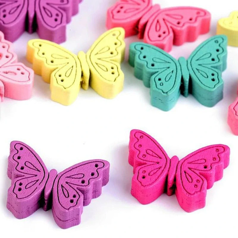Korálek dřevěný motýl, mix barev / balení 20 ks