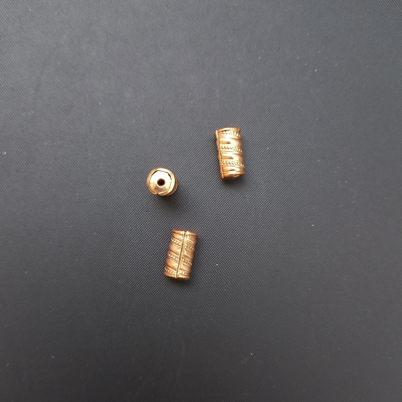 - Korálek kov váleček 11x6 mm tvarovaný, barva zlatá / balení 100 ks