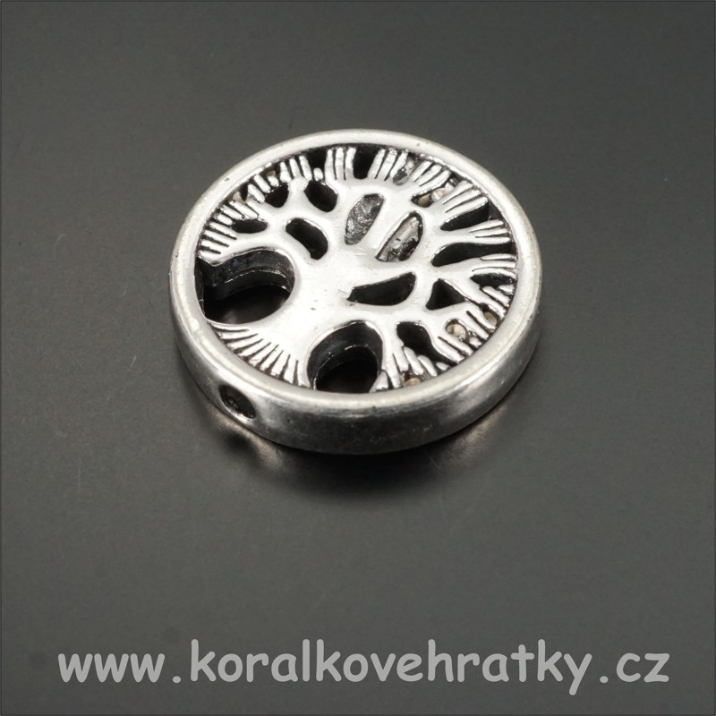 - korálek - mezikus-, strom života, kov, 18x4mm, barva platina / balení 4 ks