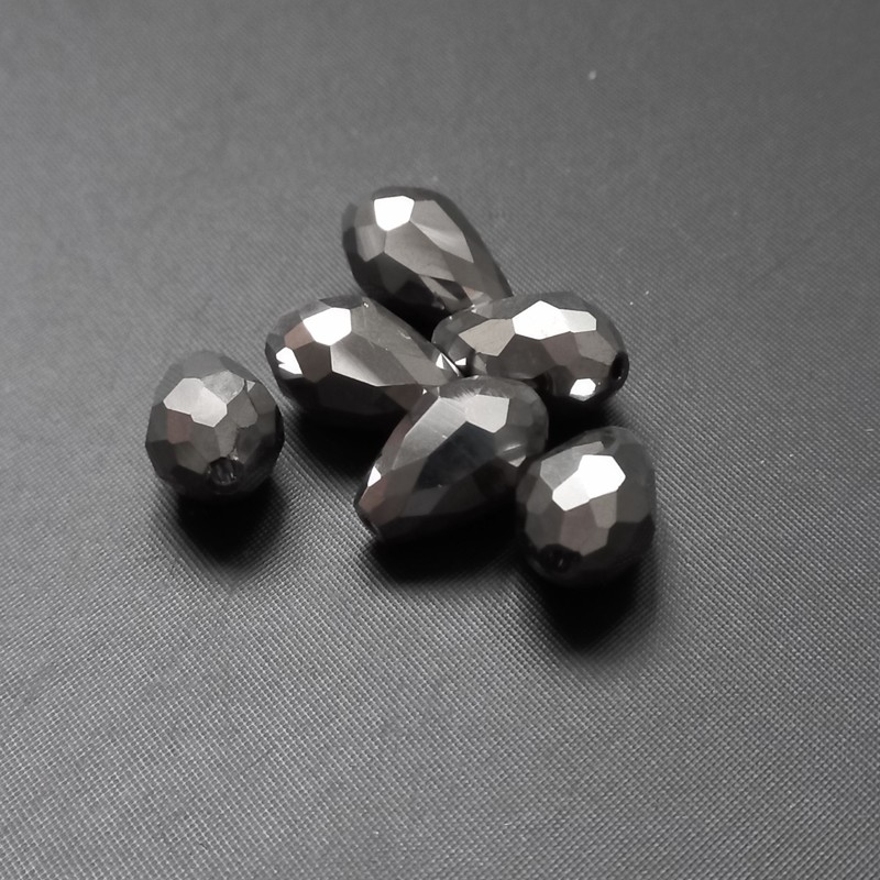 - Korálek sklo 15x10 mm hruška broušená, barva hematit / balení 10 ks