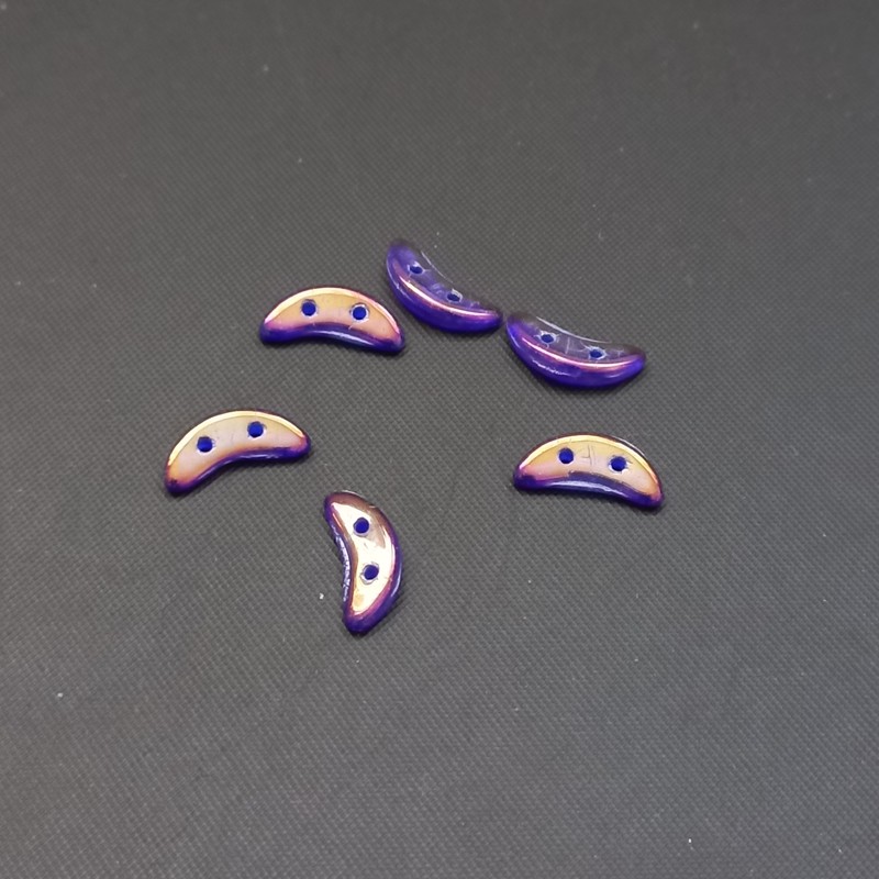 - Korálek sklo, dvojdírkový, Crescent 3x10 mm fialová s pokovem, 3 g / min. objednávka 9 g