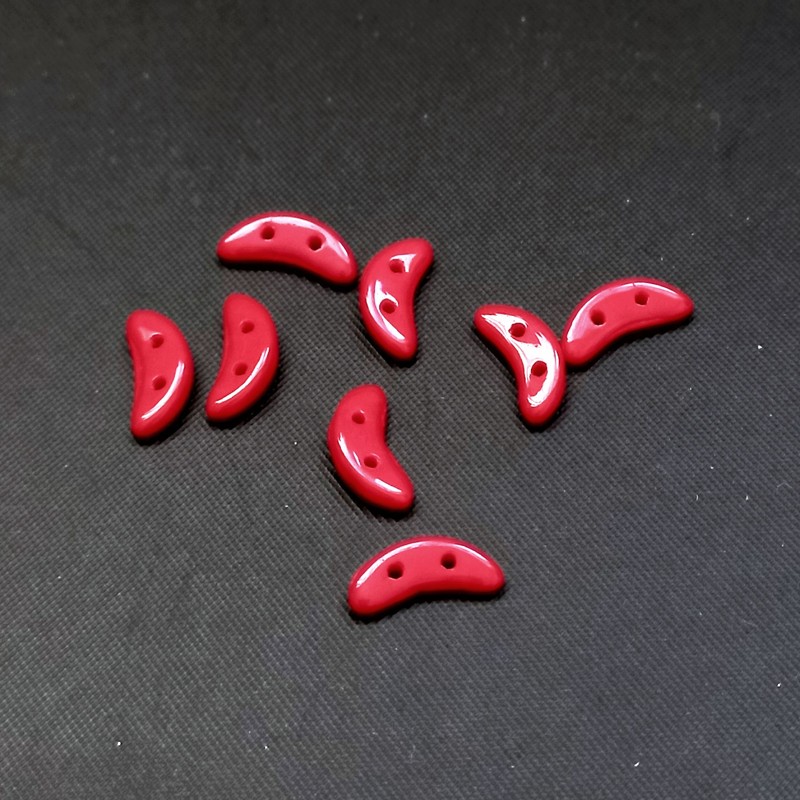 - Korálek sklo, dvojdírkový, Crescent 3x10 mm Opaque Red, 3 g / min. objednávka 9 g