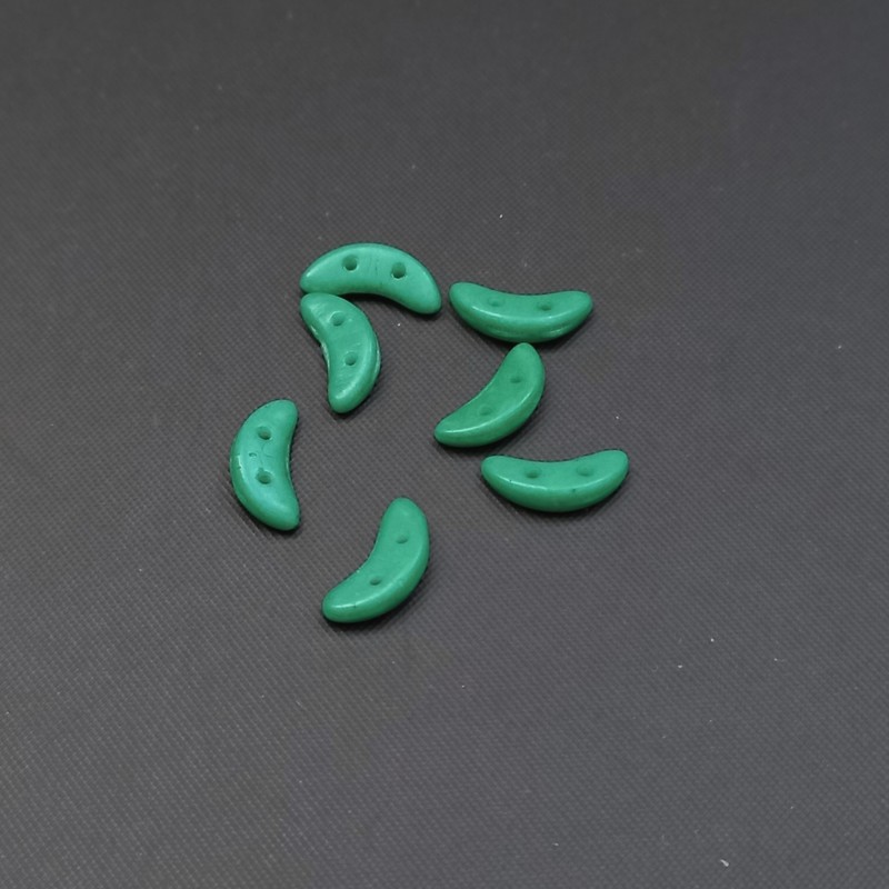 - Korálek sklo, dvojdírkový, Crescent 3x10 mm zeleno-tyrkysový, 3 g / min. objednávka 9 g