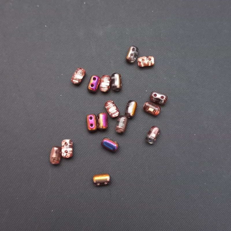 - Korálek sklo, dvojdírkový, RULLA 3X5 mm, čirý SLIPERIT (fialovo-zlatý pokov ), 5 g / min. objednávka 10 g