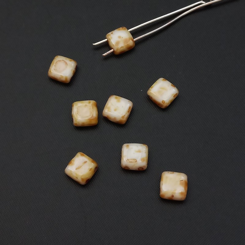 Korálek sklo, dvoudírkový, TILA 6x6mm, Picasso krémově hnědá / balení 40 ksSkladem0,60 Kč/ ks0,50 Kč bez DPH
