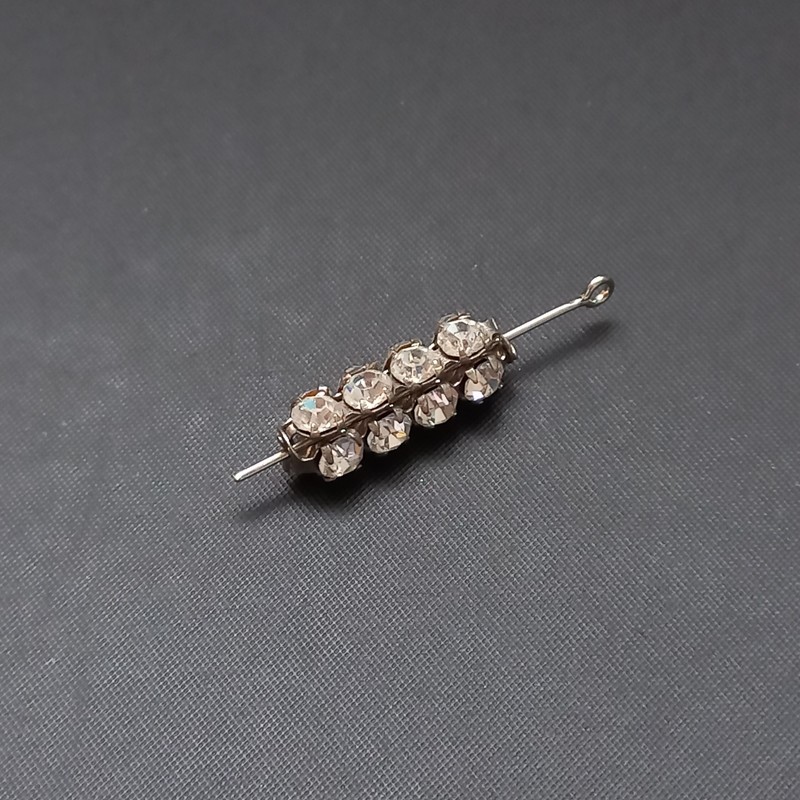 - Korálek/mezikus štrasový váleček, 4 kameny, krystal/platina / balení 10 ks