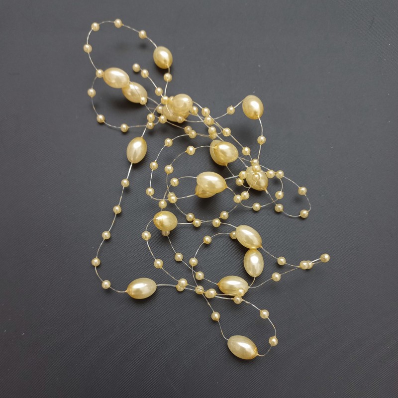 - Korálky dekorační na silonu - kuličky a oválky , cca 1,25 m, zlato-žluté / balení 4 šňůr