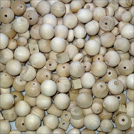 Dřevěný mix korálků, český výrobce. Mix je tvořen většími korálky a tvary (cca.14 - 25 mm).
