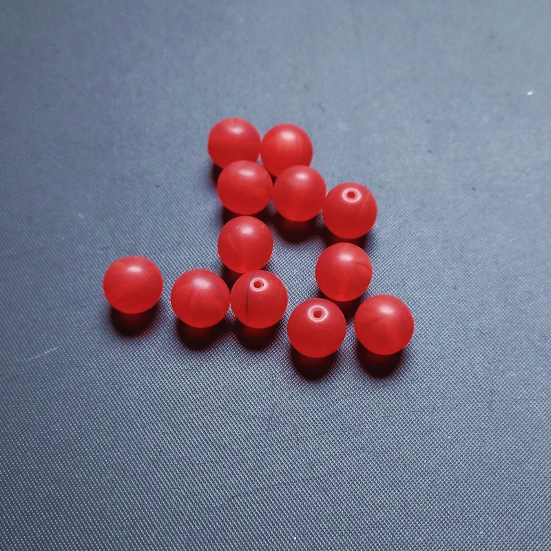 - Korálky mačkané, 8mm, sklo, barva sv. červený opál mat/ balení 46 ks