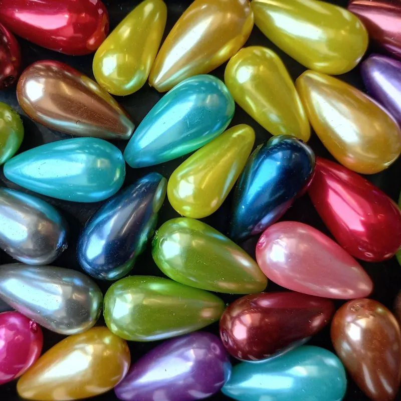 - Korálky plast voskovaný, hruška 16x10 mm barevný mix ( balení 116 ks )