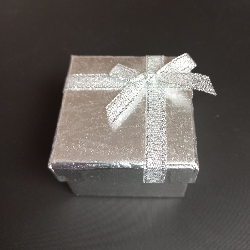 - Krabička na prsten stříbná se stužkou 45x45x35 mm / balení 2 ks