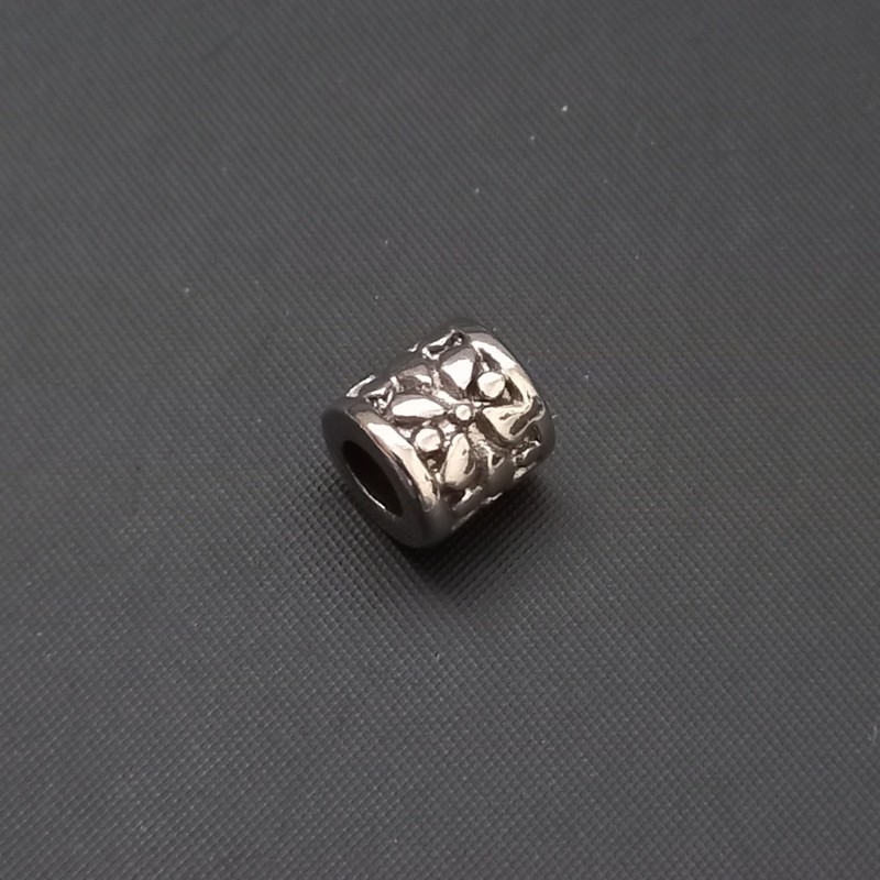 - Mezikus NEREZ OCEL, velkodírový korálek váleček s ornamentem 8x8 mm, česká výroba