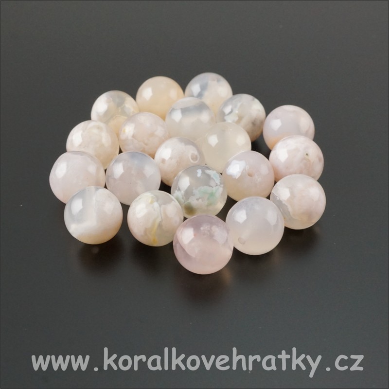 - Minerální korálky, 10mm, Achát "sakura"/balení 5 ks