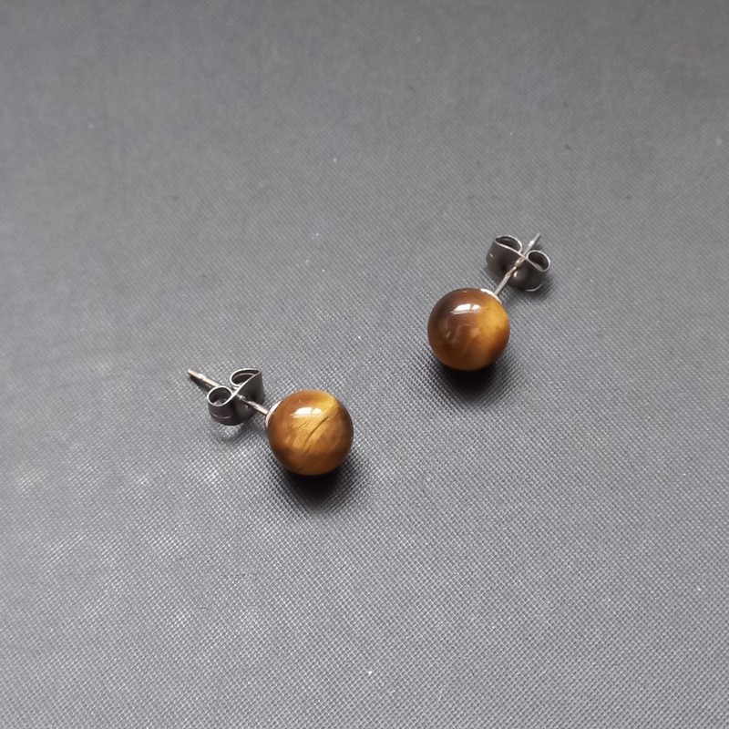 - Náušnice puzety s minerálem, kulička 8mm / tygří oko