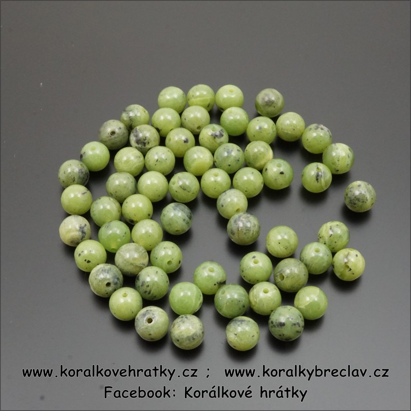 - Nefrit, 6 mm, minerální korálky/ balení 10 ks