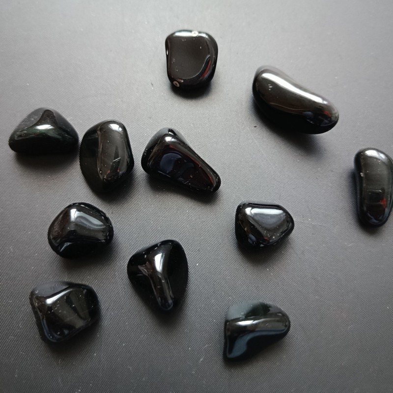 Jedná se odrobné tromlované kousky minerálu obsidián duhový o velikosti cca 2-3 cm.