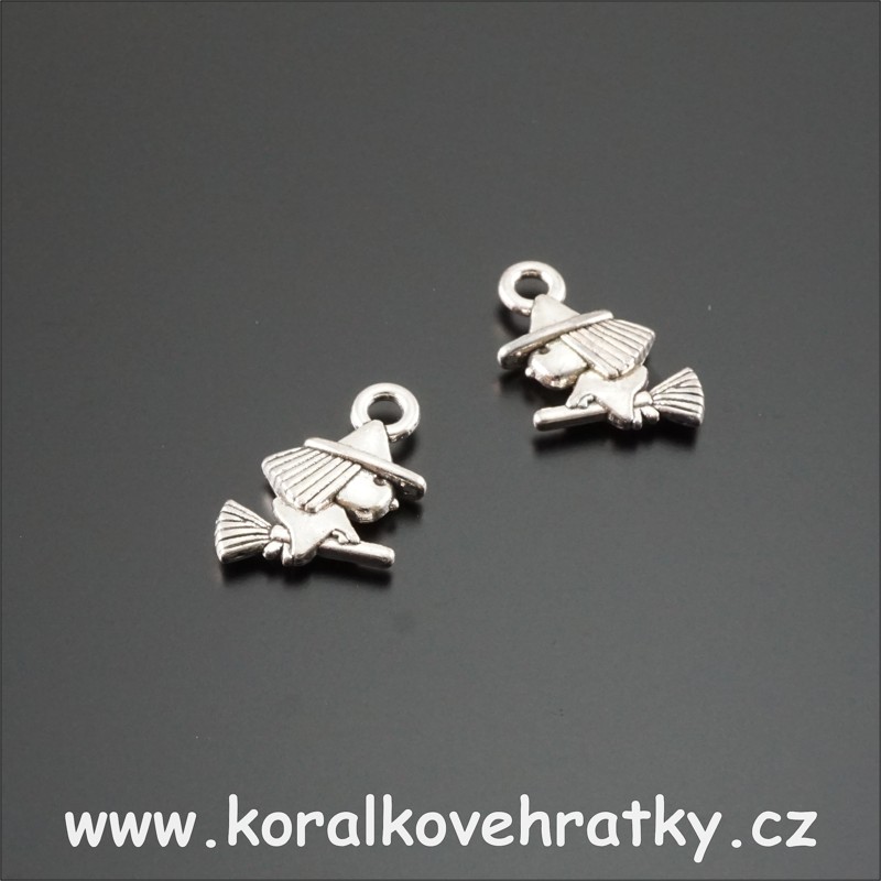 Přívěsek čarodějnice, kov, 17x12mm, barva platina (balení 8 ks)