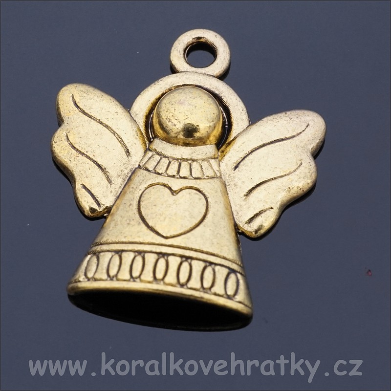 Přívěsek, kov, anděl, 19x22 mm, barva antickézlato (balení 4ks)