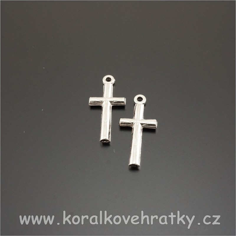 Přívěsek křížek kov, 18x8 mm, barva platina ( balení 10 ks )