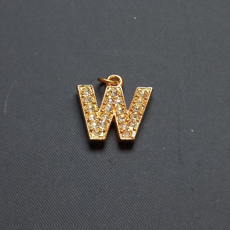 Přívěšek písmeno se šatony,výška 18mm, barva zlatá, W