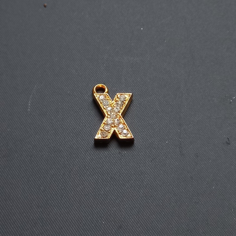 Přívěšek písmeno se šatony,výška 18mm, barva zlatá, X