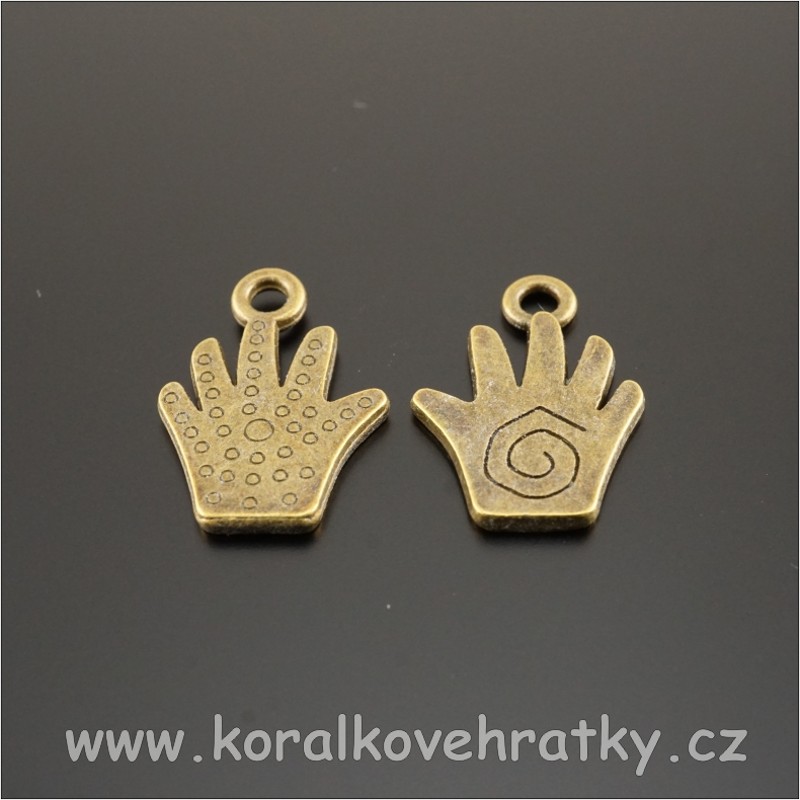 Přívěsek ruka, kov, 12x1811 mm, barva staromosaz ( balení 20 ks )