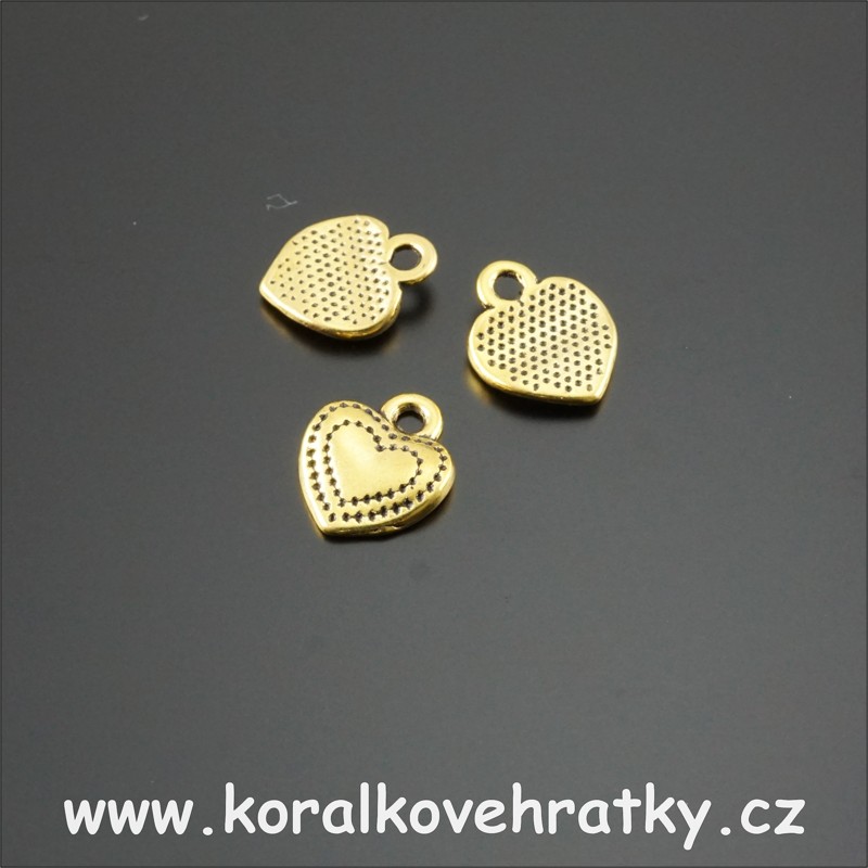 Přívěsek srdce, kov, 11x13mm, barva zlato (balení 21 ks)