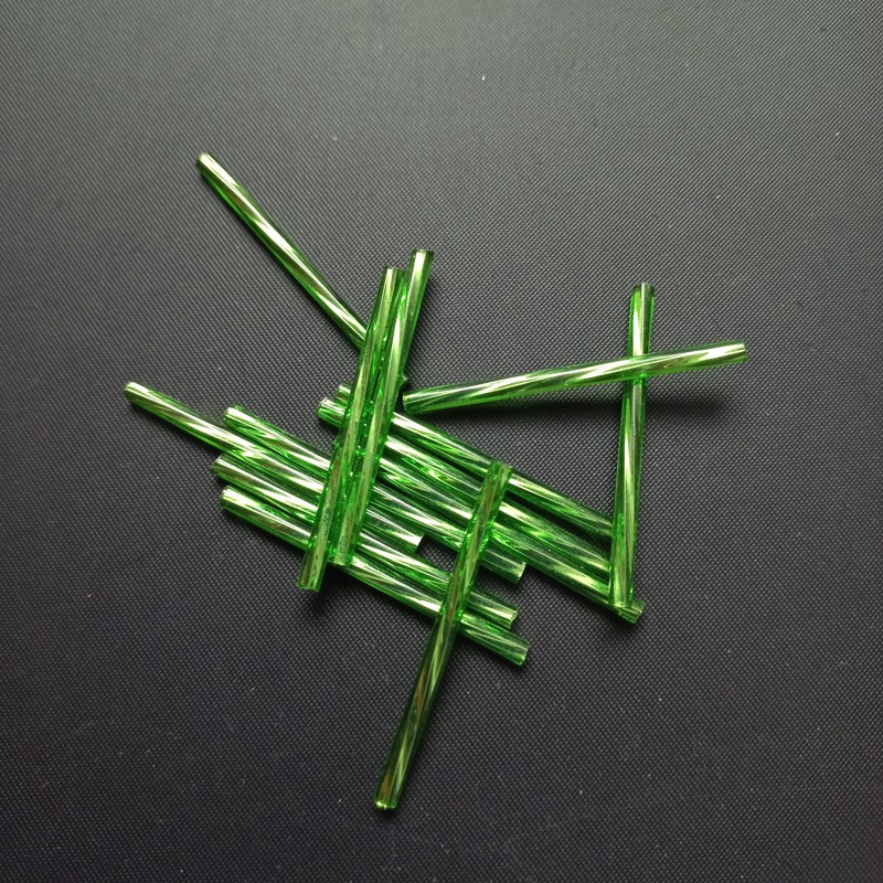 Sekané tyčinky z PRECIOSY, zelené se stříbrným točeným čtvercovým průtahem.
