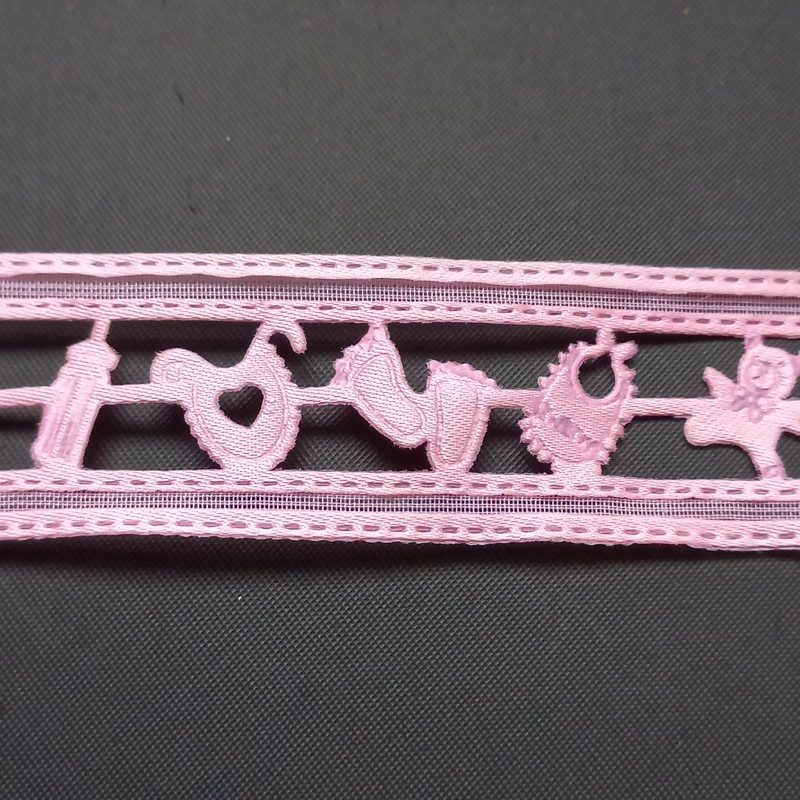 Dekorační stuha s vyřezanými miminkovskými motivy - bryndák, falštička, medvídek